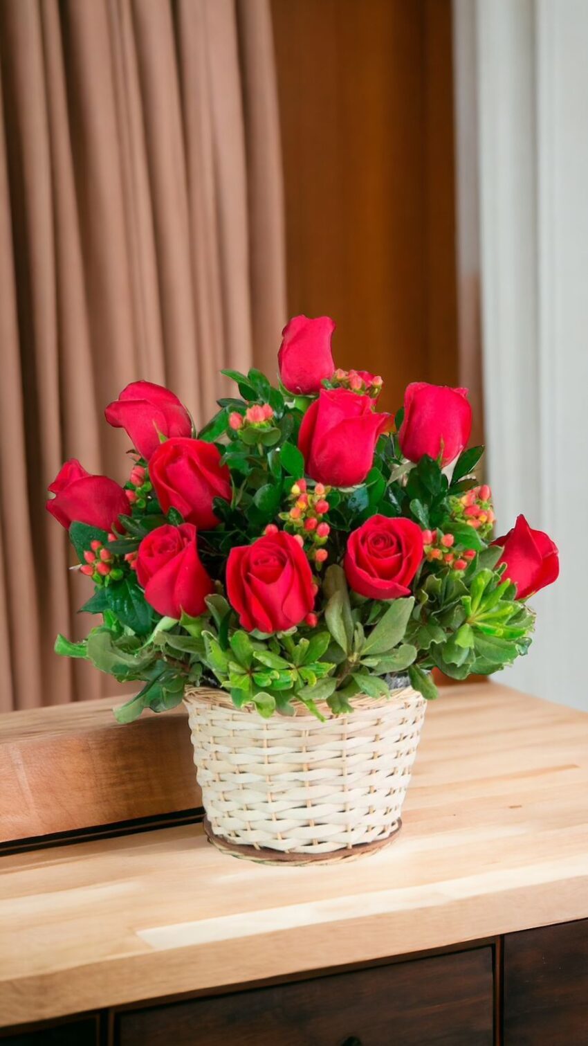 - Canasta love red con 15 rosas rojas , folajje importado
